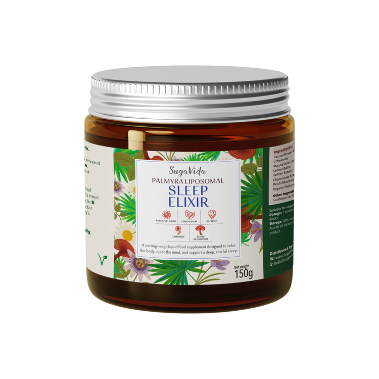 Our Sleep Elixir is the first-ever nighttime liposomal gel powered by Palmyra Blossom Nectar, expertly formulated to calm the mind, relax the body, and improve the quality of your rest—naturally.
