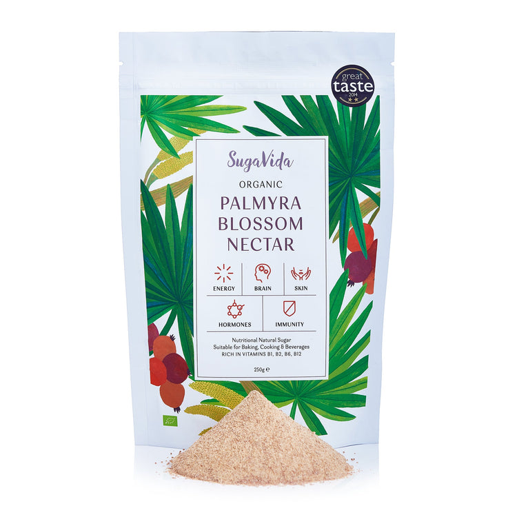 Organic Palmyra Blossom Nectar is the 100% pure nectar from the South-Indian Palmyra tree. With extensive benefits and no downsides, Palmyra Blossom Nectar is the only sweetener which enhances rather than endangers health.