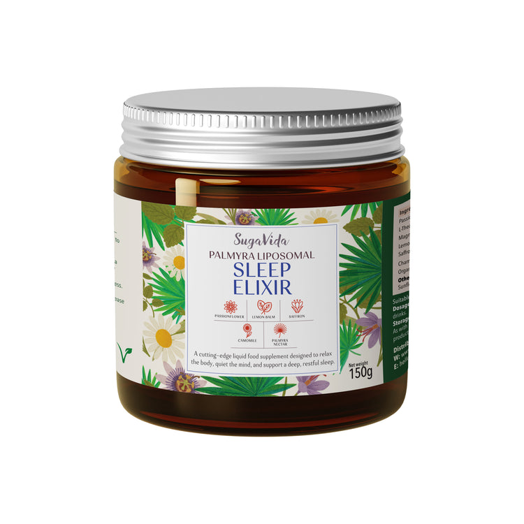 Our Sleep Elixir is the first-ever nighttime liposomal gel powered by Palmyra Blossom Nectar, expertly formulated to calm the mind, relax the body, and improve the quality of your rest—naturally.